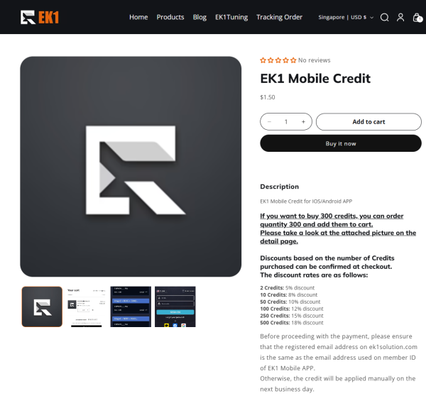 Before proceeding with the payment, please ensure that the registered email address on ek1solution.com is the same as the email address used on ek1tuning.com.